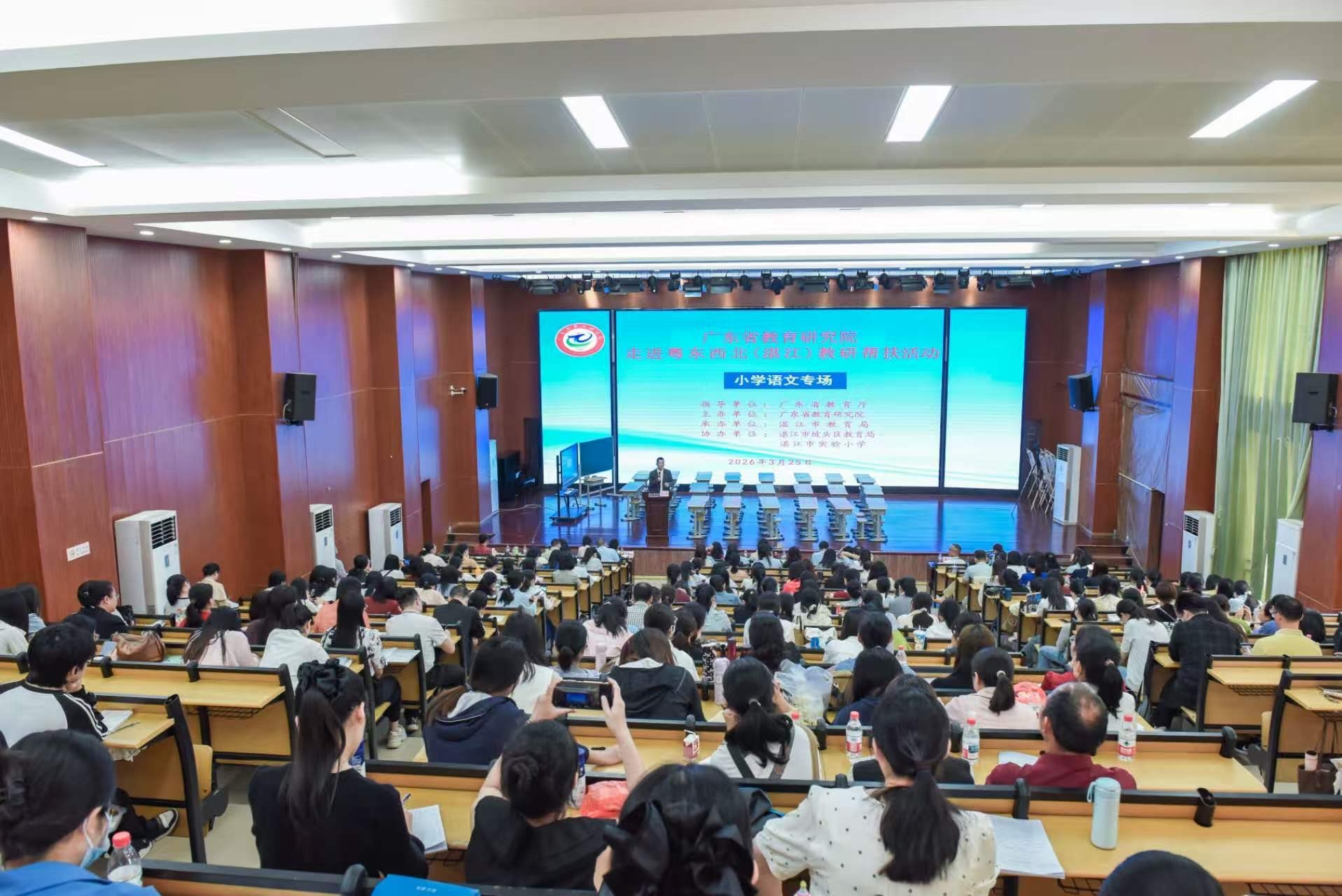帮扶团队分赴雷州、廉江、吴川三个县级市,遂溪、徐闻两县,以及赤坎、霞山、麻章、坡头、开发区五个区。44个学段学科专场涵盖语文、数学、英语、物理、化学、生物、历史、地理、思政、音乐、体育、美术、心理健康、信息技术、劳动教育、特殊教育等学科。每个专场按照“磨课研讨—同课异构—课例展示—专家评课—专题讲座—教研沙龙—教学会诊”一体化模式开展,本地教师与来自省教研院、广州等地的专家同台授课,课后进行深度评课交流与专题引领,同步开展新课标解读、教学评一体化实践等针对性指导。