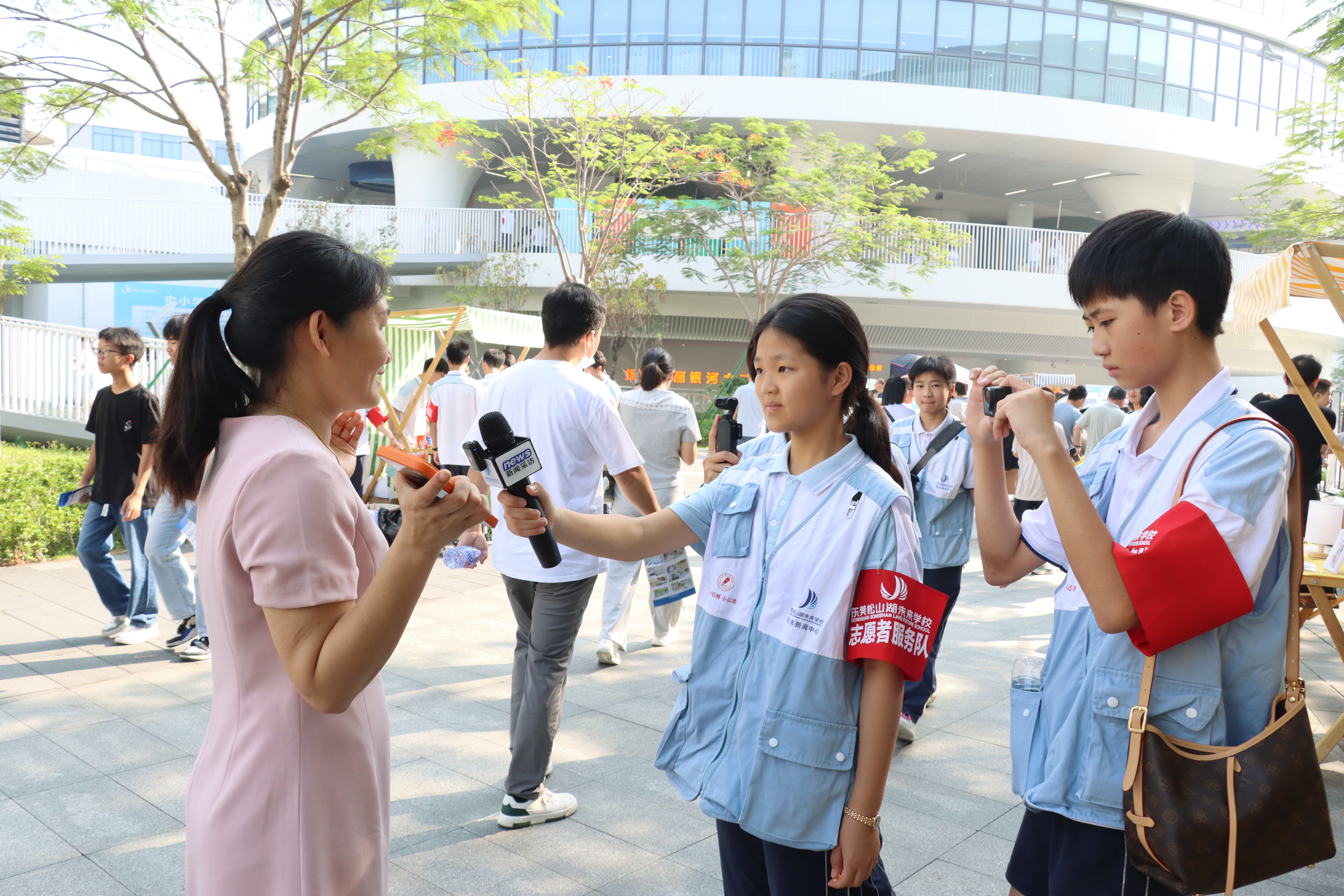 开放日当天,学校官方视频号、抖音号同步直播,学生担任主播带领无法到场的家庭“云探校”;融媒体新闻中心学生记者穿梭校园采访;学生志愿者热情引导、耐心讲解,成为一道亮丽风景。