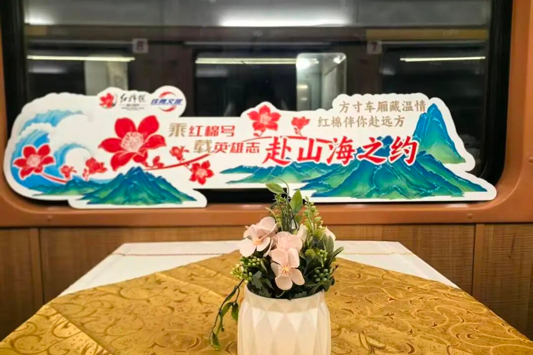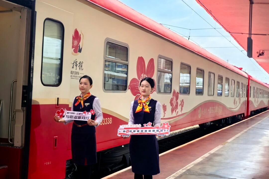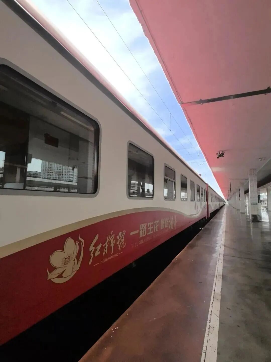 列车以木棉花为统一IP形象,全列编组17辆,包含软卧包间“舒蕊阁”6辆、硬卧包间“芳华庭”8辆,及餐车“锦筵厅”1辆、发电车、宿营车各1辆,载客定员568人。