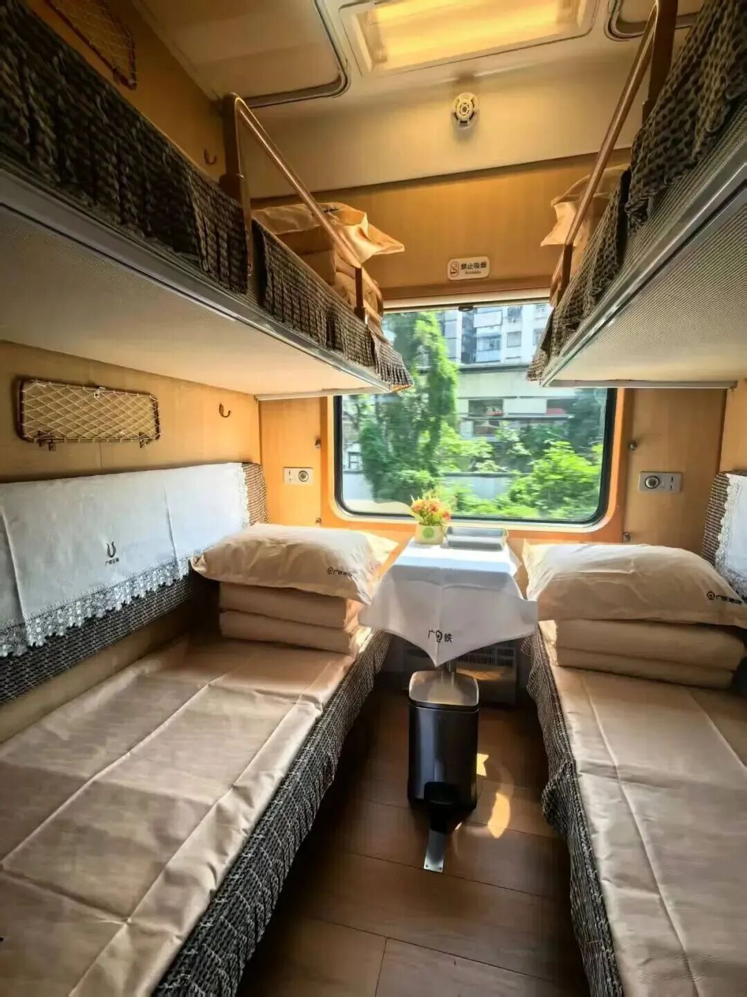 💡硬卧车厢经全面改造升级,成人午夜亚洲精品无码网站由原6人隔间优化为4人包房,加装包间门与间壁板,大幅提升私密性与空间利用率。对标软卧服务标准,全车同步加装通道扶手、防滑门槛,盥洗区升级热水供应、防滑地面并增设洗脚池。