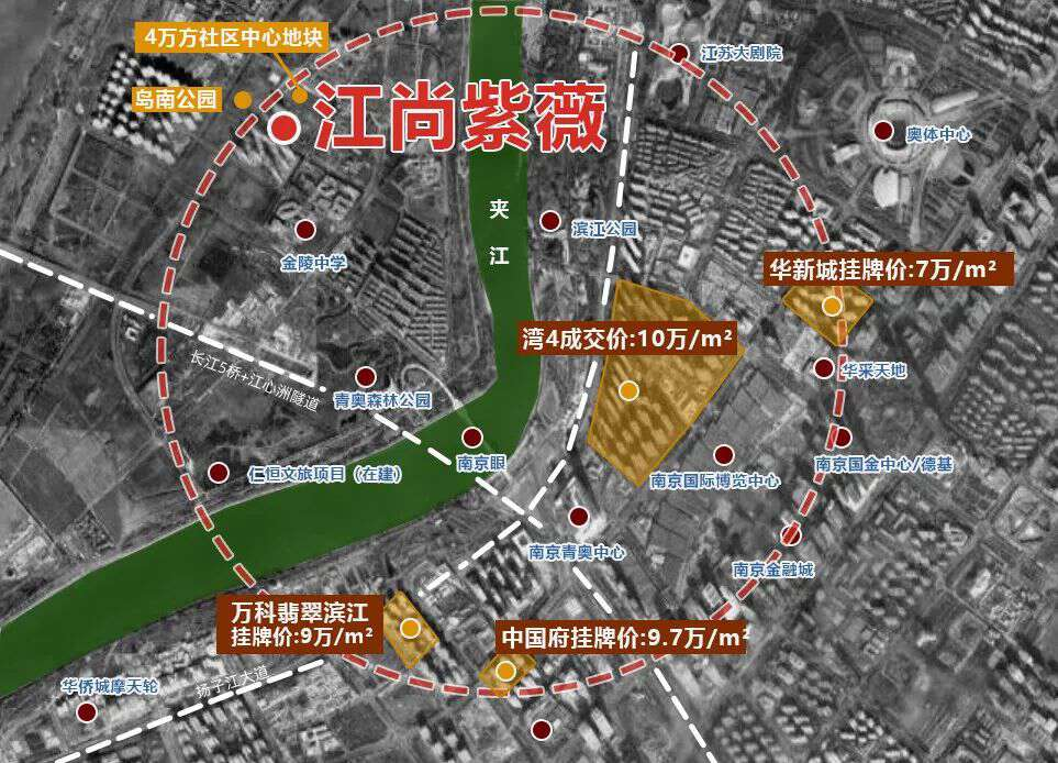 旁边是河西滨江的黄金位置,有奔腾长江、南京眼、青奥双子塔、摩天楼,加上江岛上的数十个网红打卡景点,可谓天生高光。