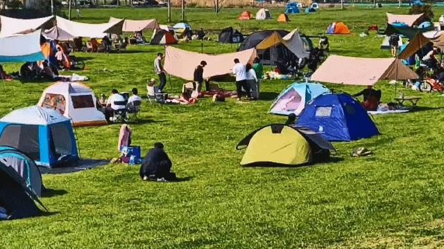 热爱追风的南京人,早早朝着“盐系小镰仓”“池杉白鹭秘境”“北欧森林”而去。露营/野餐营地铺满整个草坪,江风轻轻吹拂,把惬意与愉悦,送到每一个人的心尖。